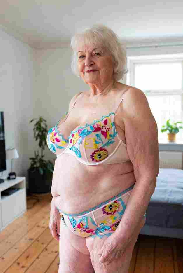 White open-cup bra and garter belt, no panties at all. She’s standing with one high-heeled foot propped on the arm of the sofa, the other on the floor. One hand works a thick glass dildo in and out—each deep thrust makes her ass cheeks jiggle. The other hand grabs one breast hard, pinching and twisting the nipple. Small, breathy “Ugh… ah… yes…” sounds spill from her lips. Suddenly she speeds up, almost pulling the toy out completely before slamming it back in. Her body convulses—she cries out as a strong squirt erupts, drenching the sofa cushion and running in warm trails down her stocking-clad legs.